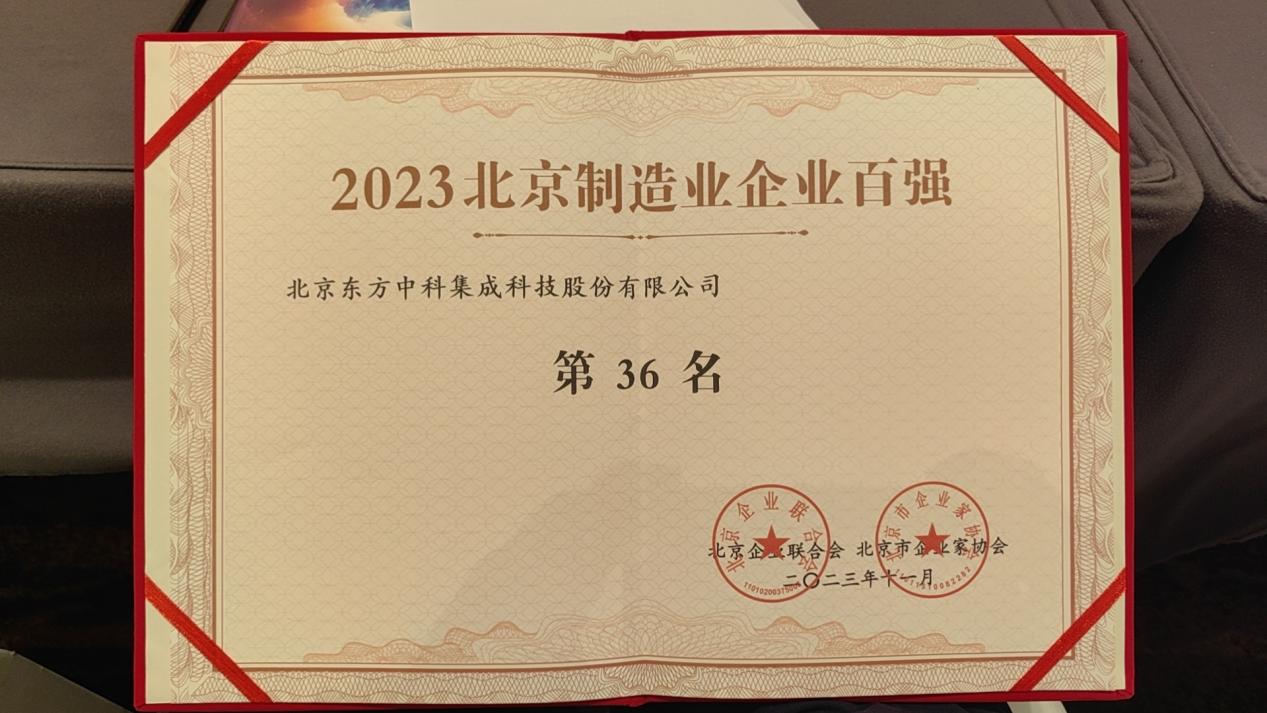 東方科儀控股成員企業(yè)東方中科入圍“2023京津冀制造業(yè)企業(yè)百強”榜單
