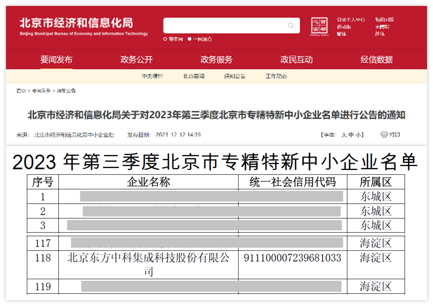 ??近日,在北京市經濟和信息化局開展的專精特新技術企業評審工作中,東方科儀控股集團有限公司成員企業北京東方中科集成科技股份有限公司(以下簡稱“東方中科”) 憑借在測試測量領域取得的科技創新成果成功獲評北京市2023年第三季度專精特新中小企業稱號。