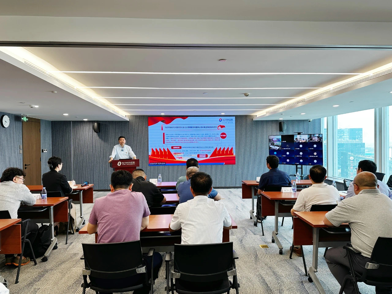 ??6月30日,東方科儀控股集團(tuán)有限公司(以下簡稱東方科儀控股)開展黨委書記講專題黨課暨慶祝中國共產(chǎn)黨成立104周年“七一”黨群團(tuán)聯(lián)合表彰,會議采取主會場現(xiàn)場參會和分會場視頻參會相結(jié)合的方式,集團(tuán)公司和京內(nèi)外成員企業(yè)黨員、團(tuán)員及工會會員代表等200余人參加了會議。