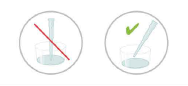 When pipetting, the tip is offset from the vertical by a slight angle, but do not touch the bottom of the sample well. |