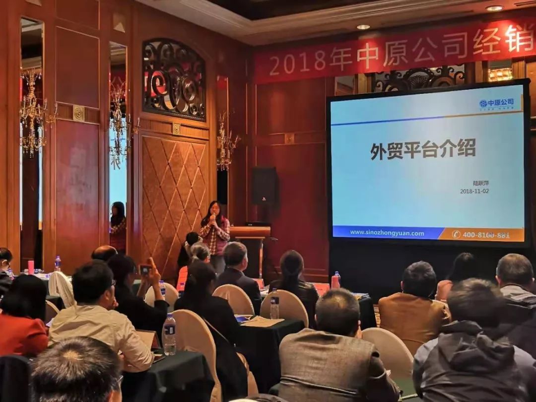 On November 2, 2018, Zhongyuan Company's 2018 dealer conference was successfully held at Beijing Zhonghang Park Hyatt Hotel. A number of dealers were invited to attend the meeting, and everyone gathered to exchange ideas. Zhongyuan Company gave a comprehensive introduction to product resources, various brands of hot products, and foreign trade platforms and import and export business.