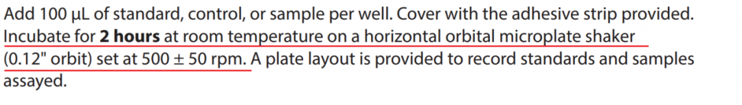 由于說明書中指定的軌道直徑 3 mm,轉速 500±50 rpm 的搖床是我們驗證過的能保證準確結果的搖床,而其它搖床,如 Western Blot 實驗中使用的水平搖床軌道直徑較大,如果設置成 500rpm 就會轉速太快,容易造成微孔板內液體飛濺、樣品孔污染,進而影響實驗結果的準確性。