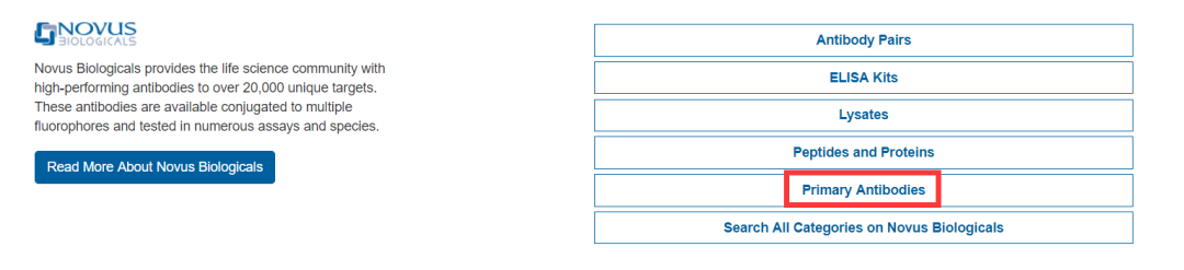 這里以 Novus Biologicals? 品牌產(chǎn)品為例,點(diǎn)擊「Primary Antibodies」