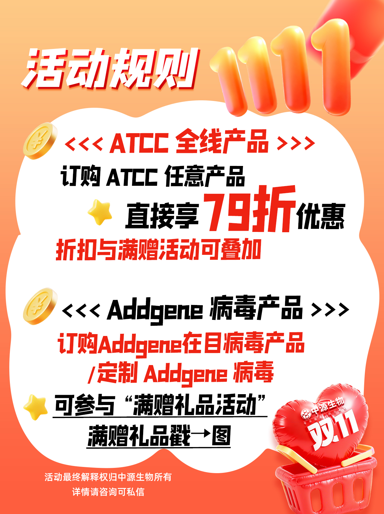 雙11科研盛典:ATCC & Addgene折上享滿贈(zèng),一單全搞定!