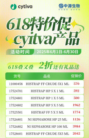 第三彈 | 618大促,Cytiva產品疊又疊,2折還有禮品送~