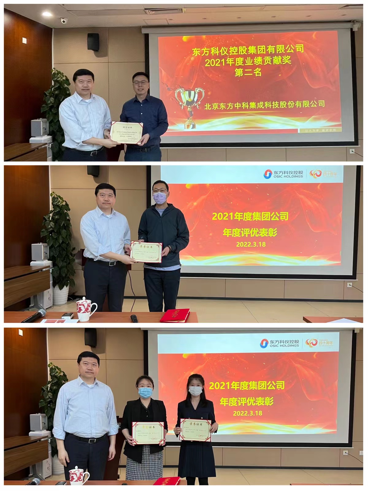 ??會議公布了2021年度成員企業(yè)業(yè)績貢獻獎、創(chuàng)新發(fā)展獎及2021年度集團公司最佳服務(wù)個人獎、最佳管理團隊獎評選結(jié)果。東方科學(xué)儀器上海進出口有限公司榮獲業(yè)績貢獻獎第一名,北京東方中科集成科技股份有限公司榮獲業(yè)績貢獻獎第二名。集團人力資源部徐鳴鴻、集團辦公室栗麗敏獲得最佳服務(wù)個人獎,集團信息技術(shù)部獲得最佳管理團隊獎。