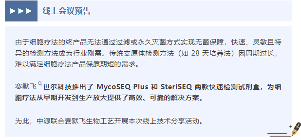 賽默飛世爾科技推出了MycoSEQ Plus 和 SteriSEQ 兩款快速檢測(cè)試劑盒,為細(xì)胞療法從...2025-06-06